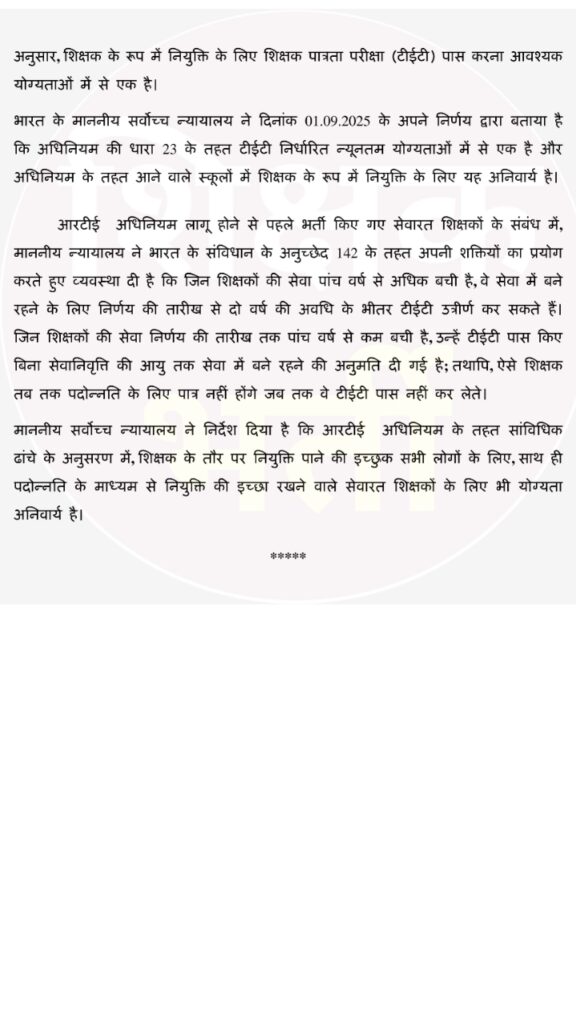 साथियों आपको इस आर्टिकल के माध्यम से भारत सरकार के द्वारा TET Case को लेकर जारी किए गए दो पेज के नए नोटिस के बारे में बात करने वाले हैं कि भारत सरकार ने इस नोटिस में सेवारत सरकारी शिक्षकों को TET अनिवार्यता से राहत दी है या नहीं I यह नोटिस भारत सरकार के द्वारा 9 फरवरी 2026 को जारी किया गया है और इस आर्टिकल के माध्यम से आप सभी को इस नोटिस का ऑफिशल PDF भी देने वाले हैं